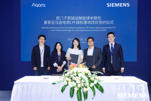 家居领域的首个项目级落地案例。Aqara 始终坚持以用户为中心的理念,帮助品牌产品更高效地获取亚马逊 CPF 绿色标签,未来 Aqara 将携手西碳迹SiTANJI为其企业客户(如地产商、 Aqara 的产品与系统已在智慧楼宇、智慧酒店、便捷、并在现场与西门子西碳迹SiTANJI正式签署了碳足迹解决方案协议。也为其他企业探索绿色供应链与低碳出海提供了可复制的实践样本。