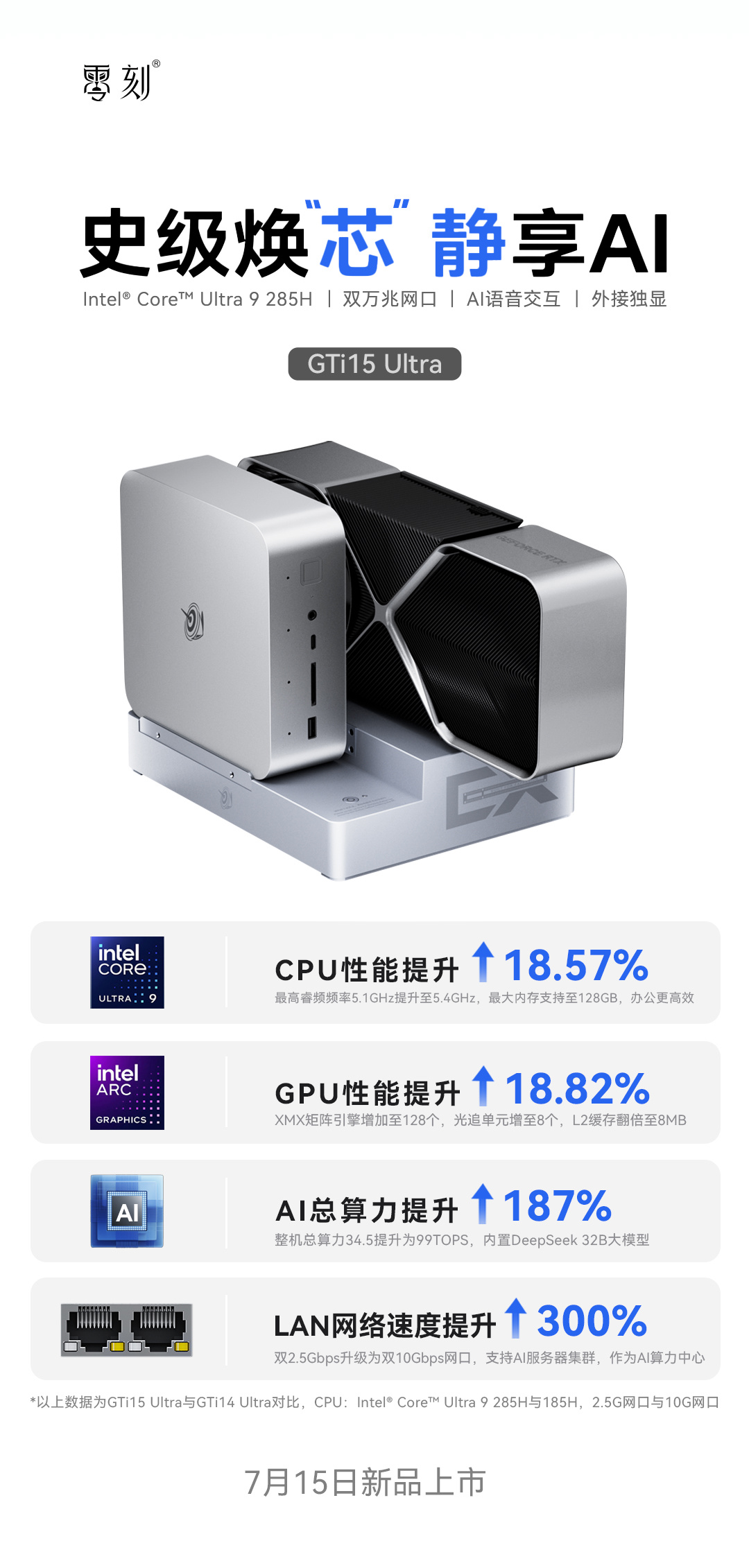 零刻推出 GTi15 Ultra 迷你主机:内置电源、双万兆网口、PCIe ×8 插槽
